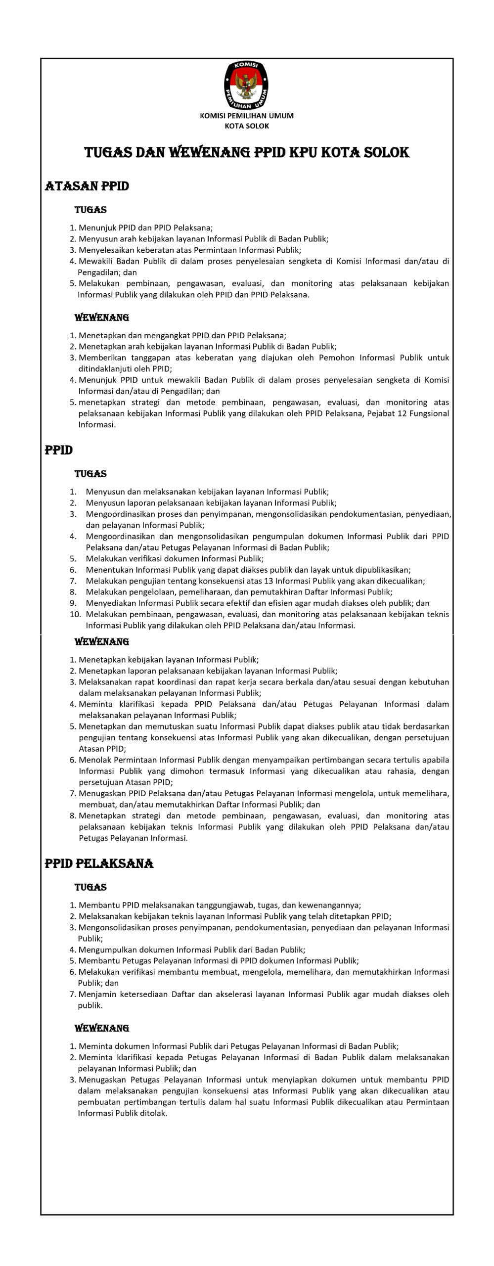 Tugas dan Fungsi PPID